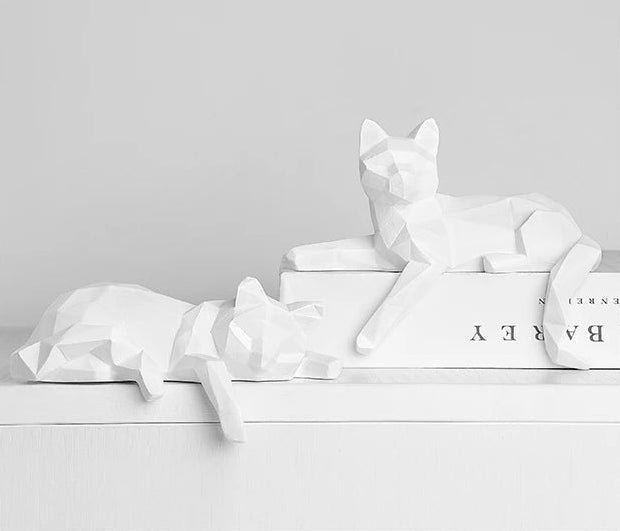 Add a dose of cool to your décor with this sculptural cat duo. Featuring clean geometric lines and a minimalist aesthetic, these lounging felines drape effortlessly over shelves, bookcases, or console edges.