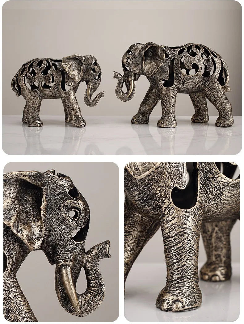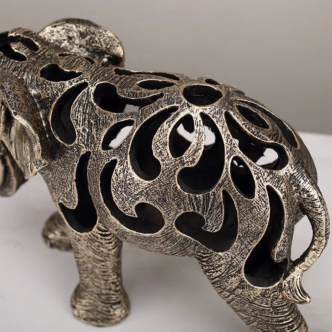 Turn your space into a sanctuary of elegance and symbolism. This intricately carved elephant sculpture exudes mystique with its antique finish and openwork design - a statement of wisdom, luck, and strength. Perfect for shelves, side tables, or entryways.