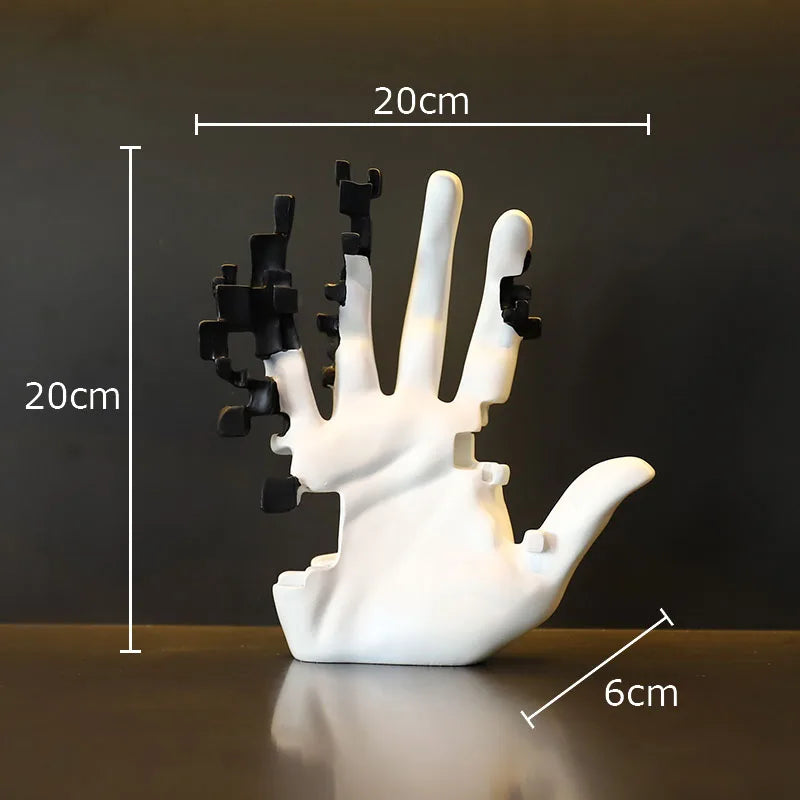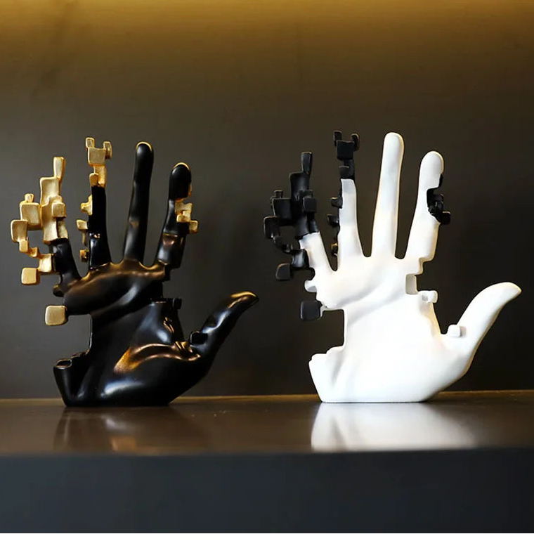 This sculptural hand appears to fragment into digital pixels, turning a simple gesture into a visual masterpiece. Available in bold black-gold and sleek white-black, it’s the perfect accent for modern homes, tech lovers, or anyone who appreciates edgy design.