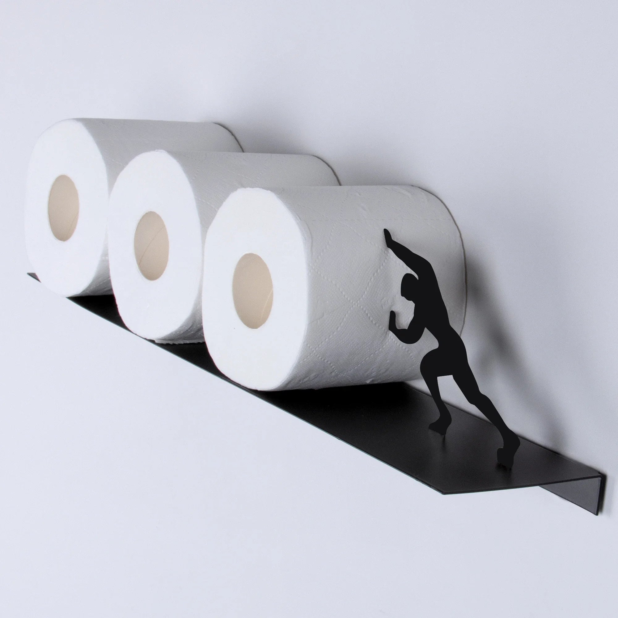 Crafted from durable metal with a sleek matte finish, it’s built to hold multiple rolls securely while adding personality to your wall. Whether you install the figure on the left or right, it adapts to your space effortlessly.