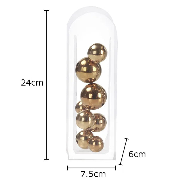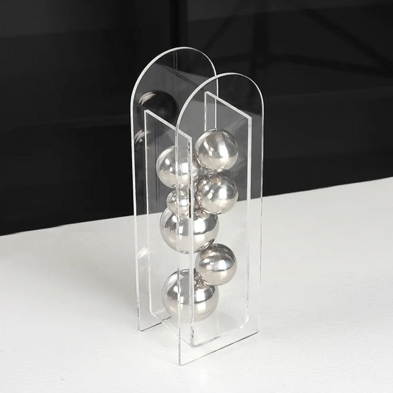 Take a unique approach to your built-ins with the Metallic Ball Abstract Vase. Crafted with a keen attention to detail, this piece will easily catch the attention of your guests with its originality.